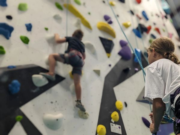 Our lead climbing walls have a vertical height of 35', with even more climbing given the wall space. Novice to advance lead routes are available and changed regularly.